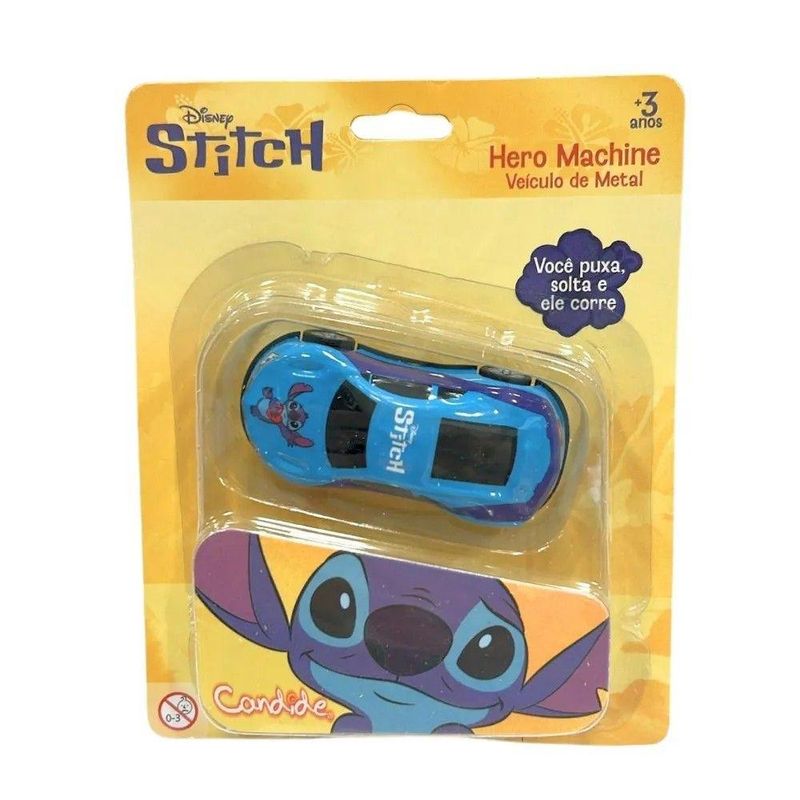 Marca: Candide;Nome do produto: Mini Carrinho Pull Back Stitch Coração;Idade recomendada: A partir de 3 anos;Selo Inmetro: 005812/2022;Contém: 1 carrinho.