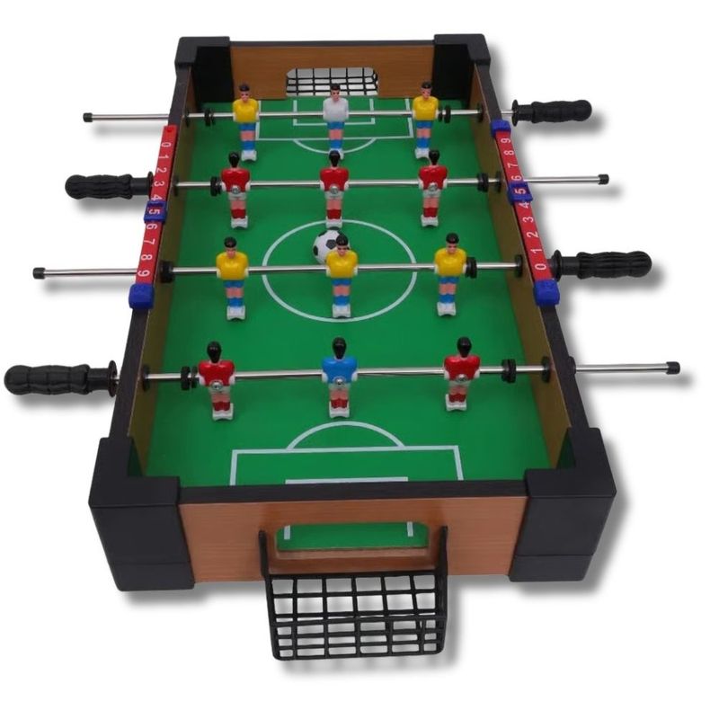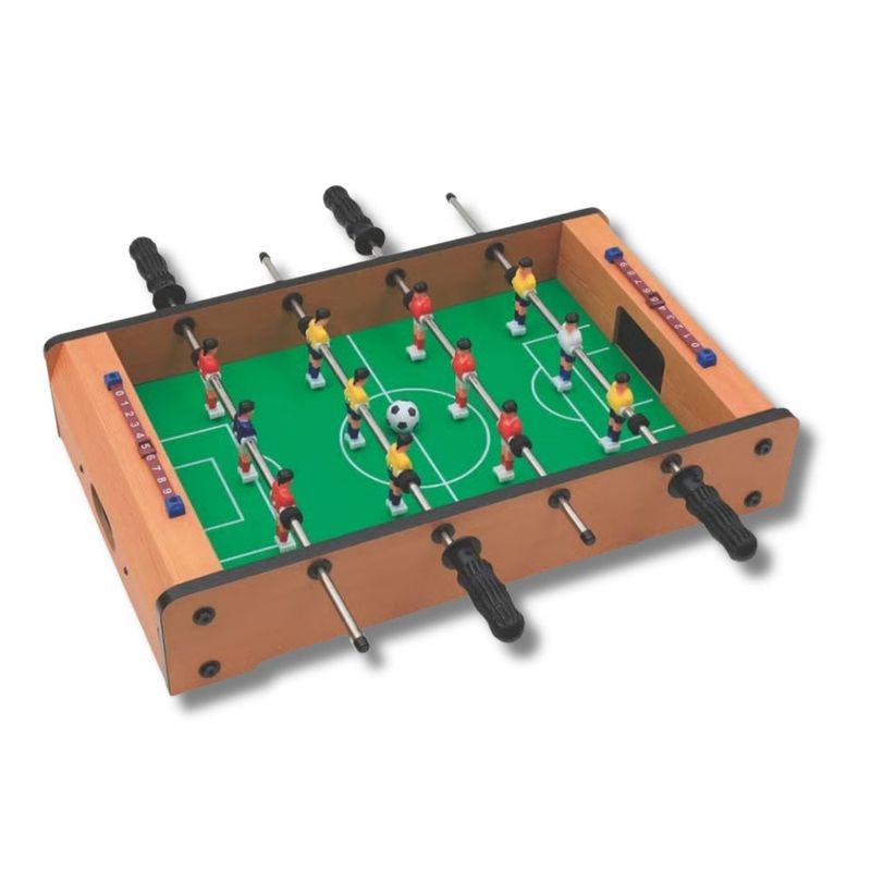 Seu tamanho compacto facilita o armazenamento e a portabilidade, ideal para qualquer ambiente de jogo. Equipado com hastes de metal de fácil deslizamento e jogadores detalhados, proporciona uma experiência de jogo realista. Conta com marcadores de pontos manuais em cada extremidade e pés antiderrapantes que garantem estabilidade durante as partidas.