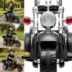 Além do visual esportivo, o modelo conta com funcionalidades que tornam os passeios ainda mais emocionantes, como buzina, música e luz policial traseira. O baú traseiro adiciona charme e praticidade, ideal para pequenos objetos ou brinquedos da criança.