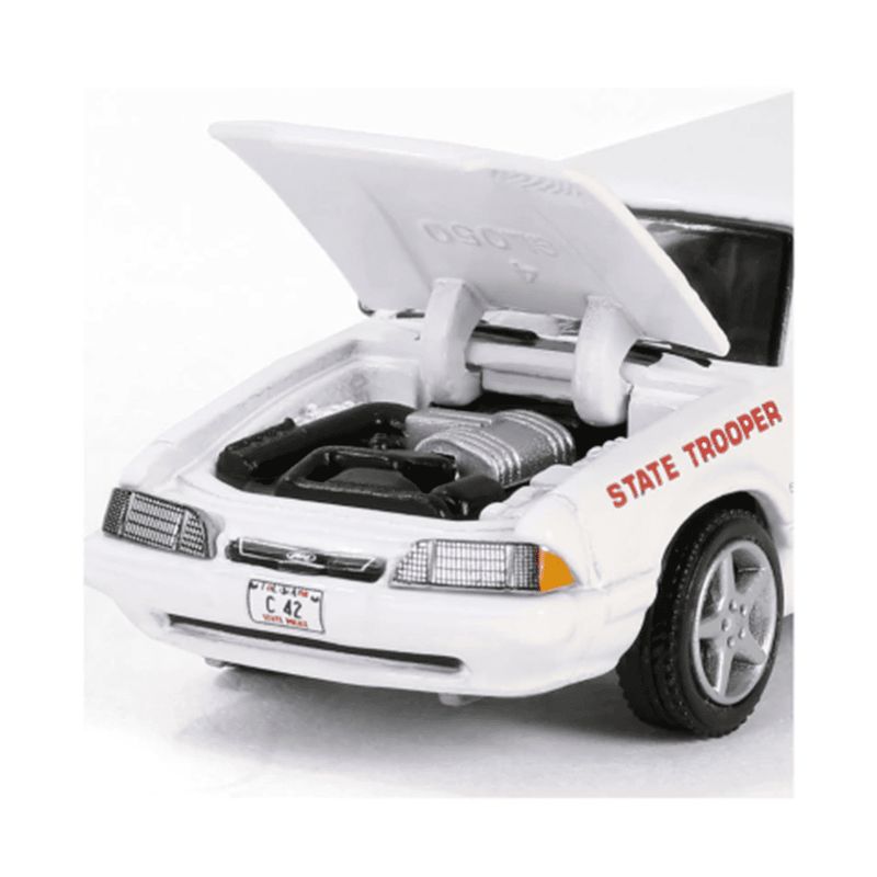 Greenlight – 1993 Ford Mustang SSP Louisiana State Police (Hot Pursuit Série 45 – Escala 1:64) Este modelo da Greenlight representa o Ford Mustang SSP (Special Service Package) de 1993, utilizado pela Polícia Estadual da Louisiana. Parte da Série 45 da coleção Hot Pursuit, esta miniatura em escala 1:64 com cerca de 7 cm de comprimento homenageia os veículos de alto desempenho empregados por forças policiais nos anos 90. Especificações do Produto Fabricante: Greenlight Linha/Série: Hot Pursuit Série 45 Modelo: Ford Mustang SSP 1993 – Louisiana State Police Montadora: Ford Cor: Branco institucional Escala: 1:64 Comprimento aproximado: 7 cm Composição: Metal, plástico e borracha Edição limitada: Sim Idade recomendada: A partir de 3 anos Dimensões da embalagem: 5,5 cm x 14,5 cm x 19 cm Destaques da Miniatura Pintura branca com detalhes autênticos da Polícia Estadual da Louisiana, incluindo emblemas e luzes de emergência Design esportivo do Mustang SSP, com carroceria aerodinâmica e proporções fiéis ao modelo original Parte da coleção Hot Pursuit, dedicada a viaturas policiais históricas e modernas Estrutura resistente e acabamento refinado, ideal para exposição temática ou coleções de veículos de serviço público Essa miniatura é perfeita para fãs de muscle cars, entusiastas da história policial americana e colecionadores que valorizam autenticidade e performance sobre rodas.