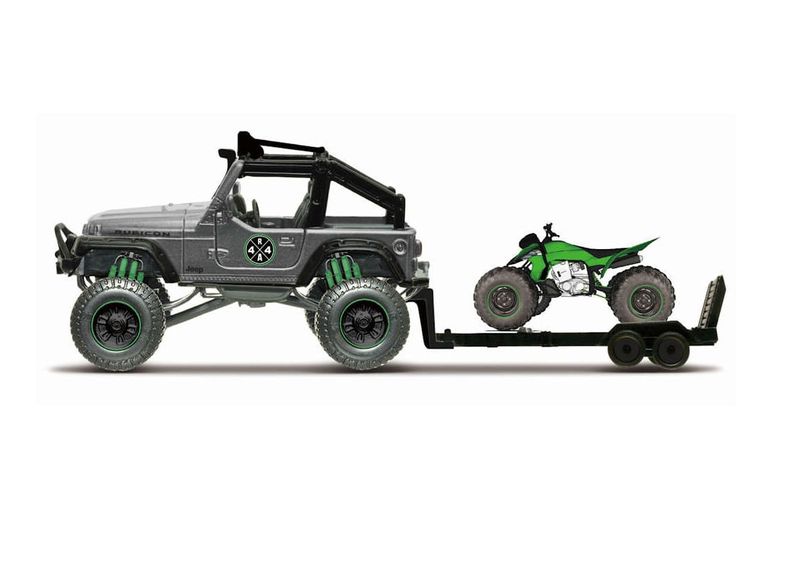 BRINQUEDOSVEÍCULOS DE BRINQUEDOCARRINHOSMiniatura 4X4 Rebels Rugged Adventures Maisto Fresh Metal - Jeep Wrangler Rubicon with ATV