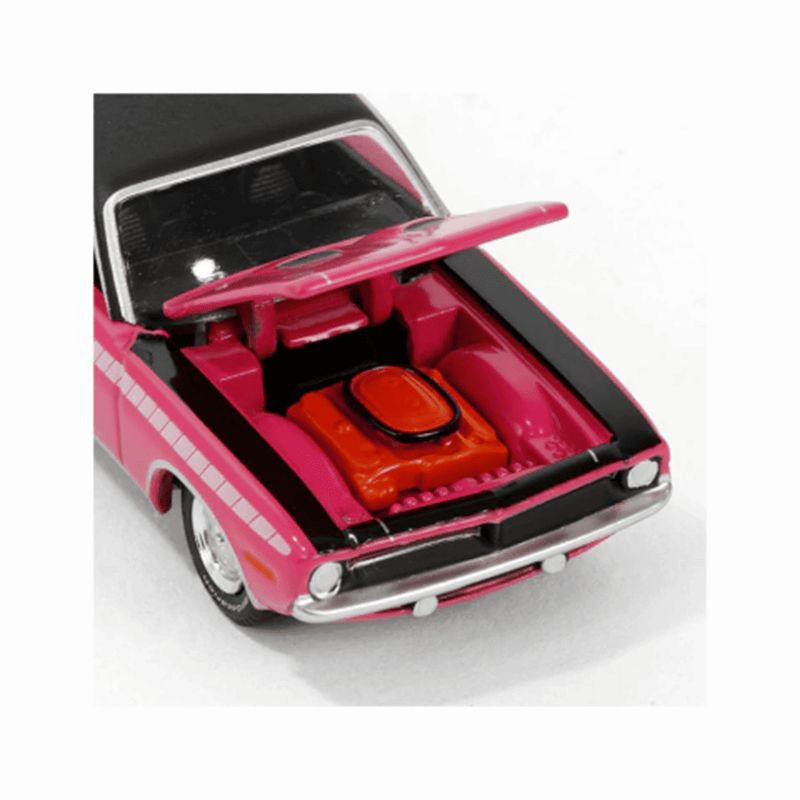 Greenlight – 1970 Plymouth Cuda (Barrett-Jackson Série 14 – Escala 1:64) Este modelo da Greenlight representa o clássico Plymouth Cuda de 1970, integrante da Série 14 da coleção Barrett-Jackson. Em escala 1:64 e com aproximadamente 7 cm de comprimento, esta miniatura destaca o estilo ousado e a potência marcante de um dos muscle cars mais reconhecidos da década de 1970. Especificações do Produto Fabricante: Greenlight Linha/Série: Barrett-Jackson Série 14 Modelo: Plymouth Cuda 1970 Montadora: Plymouth Cor: Rosa Escala: 1:64 Comprimento aproximado: 7 cm Composição: Metal, plástico e borracha Edição limitada: Sim Idade recomendada: A partir de 3 anos Dimensões da embalagem: 5,5 cm x 14,5 cm x 19 cm Destaques da Miniatura Pintura rosa com acabamento diferenciado e detalhes cromados que realçam o visual esportivo do Cuda Design musculoso com carroceria compacta, capô elevado e proporções fiéis ao modelo original de 1970 Parte da coleção Barrett-Jackson, inspirada nos veículos mais valorizados dos famosos leilões automotivos Estrutura resistente e acabamento refinado, ideal para exposição temática ou coleções de muscle cars clássicos Essa miniatura é ideal para colecionadores que valorizam estilo, exclusividade e autenticidade sobre rodas.