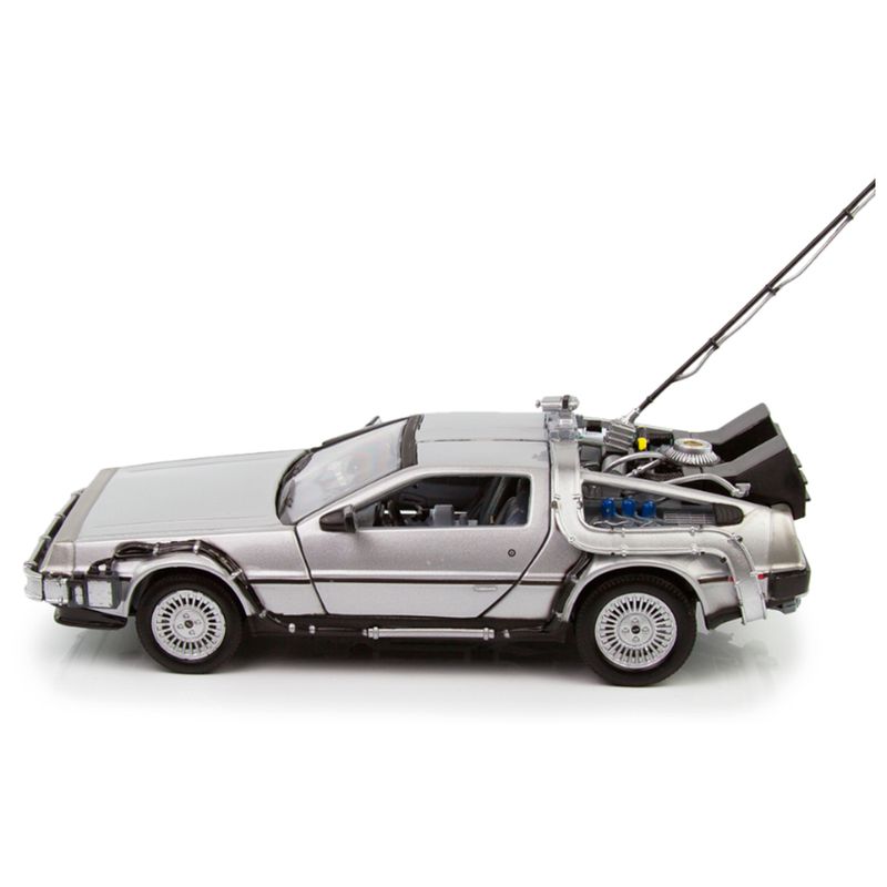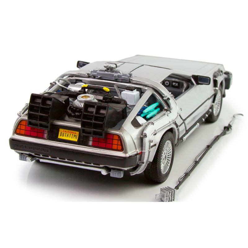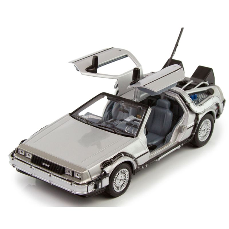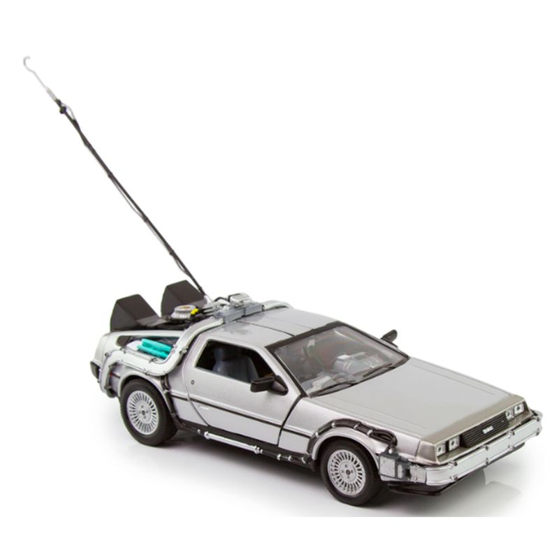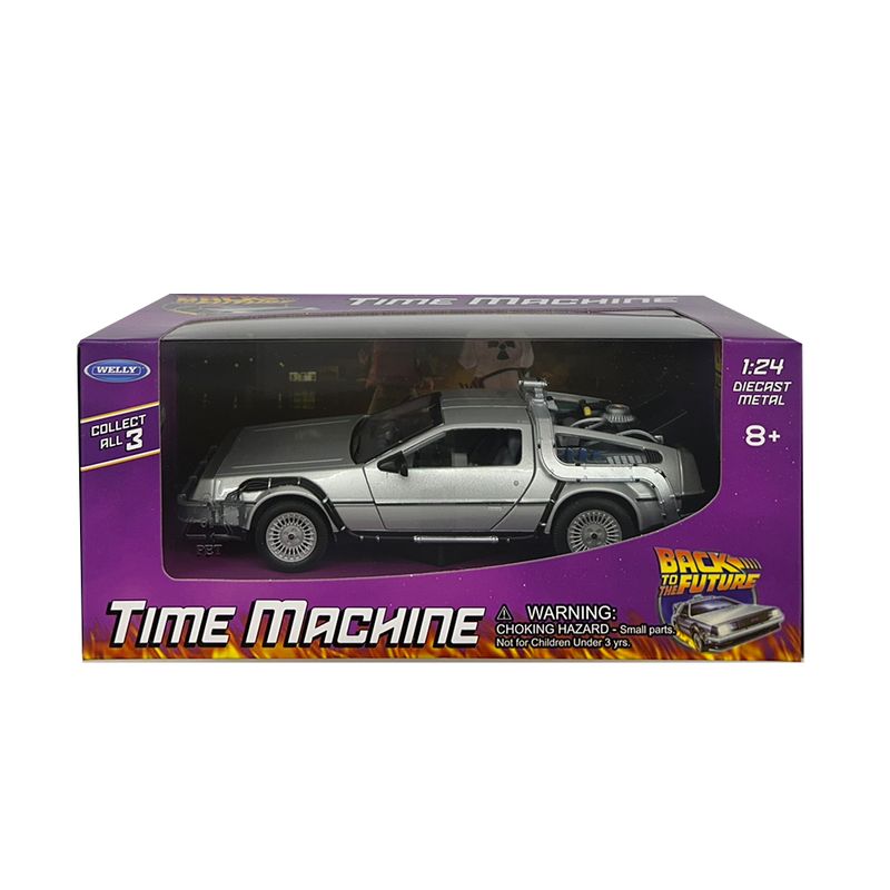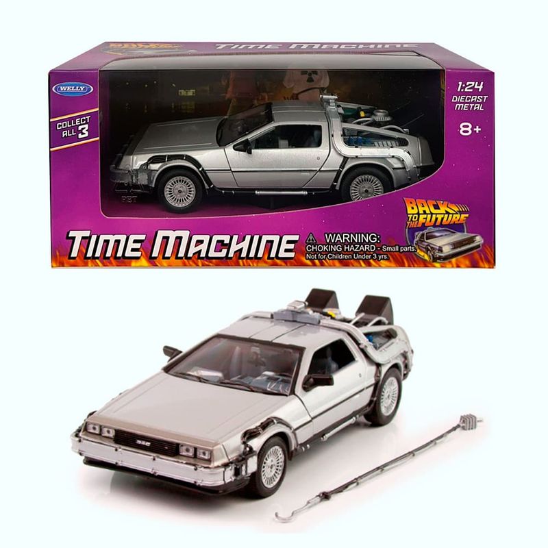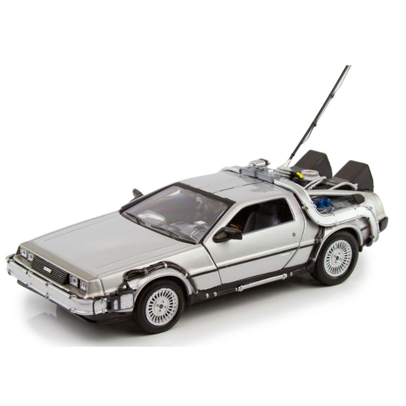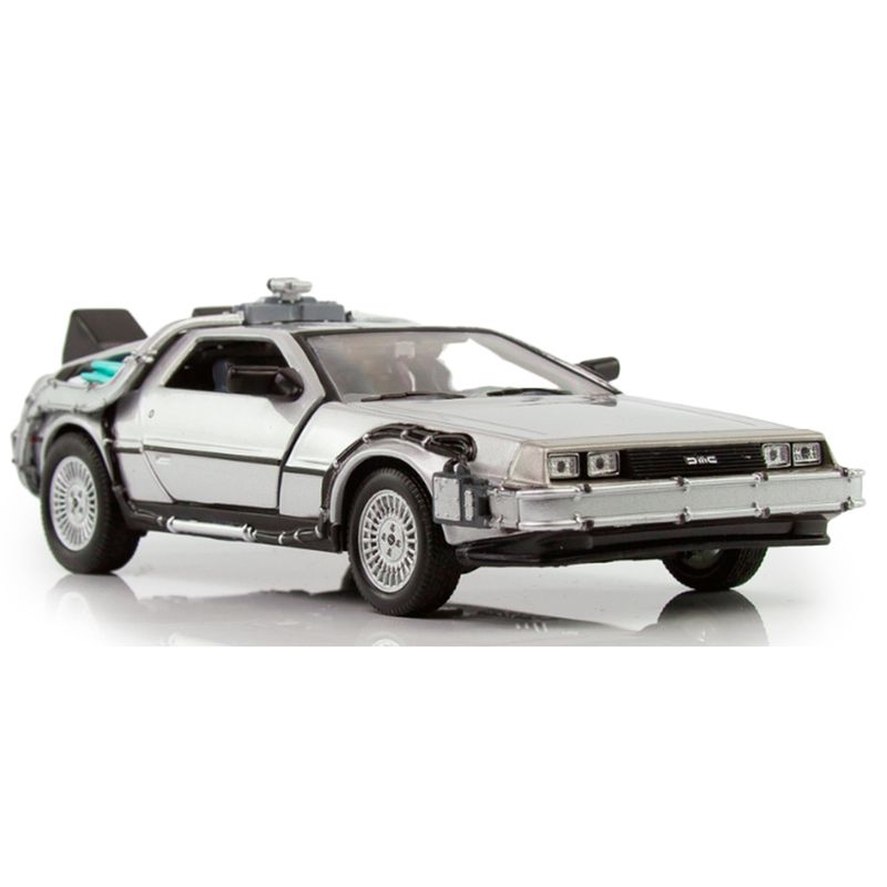 Welly – DeLorean “De Volta para o Futuro I” (Universal Studios – Escala 1:24) Este modelo da Welly recria com precisão o icônico DeLorean DMC-12 do primeiro filme da trilogia “De Volta para o Futuro”. Com acabamento em prata inox, escala 1:24 e cerca de 17 cm de comprimento, a miniatura representa o início da jornada temporal de Marty McFly e Doc Brown. Especificações do Produto: Fabricante: Welly Série/Coleção: Universal Studios Montadora representada: DeLorean Modelo: DMC-12 – “Back to the Future Part I” Cor: Prata Escala: 1:24 Comprimento aproximado: 17 cm Composição: Metal fundido, plástico e borracha Idade recomendada: A partir de 3 anos Dimensões da embalagem: 11,2 cm x 23 cm x 10,3 cm A miniatura apresenta detalhes como o capacitor de fluxo, reatores traseiros e portas tipo asa de gaivota funcionais. O acabamento metálico reforça o visual futurista do modelo original, enquanto os elementos técnicos simulam o sistema de viagem no tempo desenvolvido por Doc Brown.