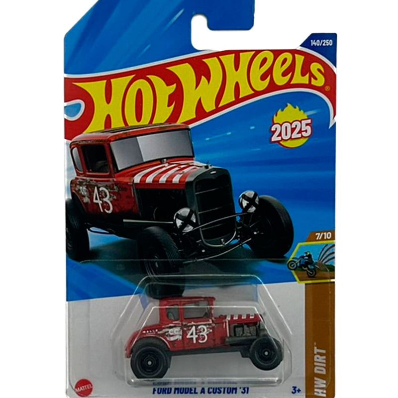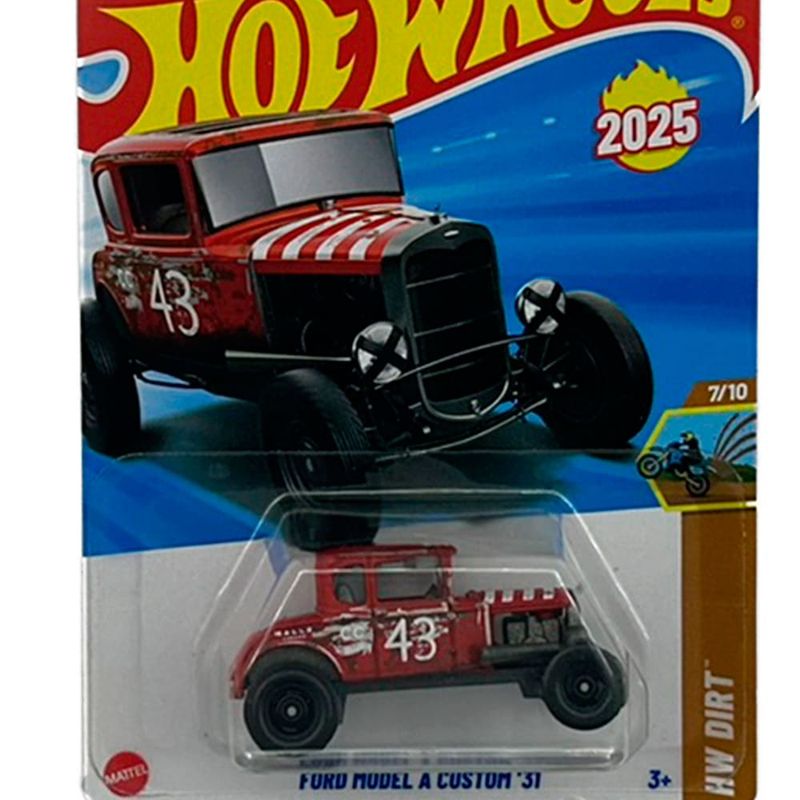 Hot Wheels – Ford Model A Custom ? Vermelho (HW Dirt – Escala 1:64) Este modelo da Hot Wheels transforma o clássico Ford Model A de 1931 em uma versão customizada e pronta para aventuras off-road, agora em destaque na coleção HW Dirt. Produzido pela Mattel, esta miniatura em escala 1:64 é voltada para colecionadores que valorizam tradição com um toque radical. Especificações do Produto Fabricante: Mattel Linha/Série: Hot Wheels – HW Dirt Modelo: Ford Model A Custom ? Montadora: Ford Cor: Vermelho Escala: 1:64 Comprimento aproximado: 7 cm Composição: Metal e plástico Idade recomendada: A partir de 3 anos Dimensões da embalagem: 10,8 cm x 3 cm x 16,6 cm Destaques da Miniatura Pintura vermelha com acabamento vibrante e detalhes customizados, como suspensão elevada, escapamento lateral e rodas off-road Design retrô com proporções clássicas e estilo modificado para trilhas e terrenos difíceis Parte da linha HW Dirt, dedicada a veículos preparados para aventuras radicais fora da estrada Estrutura resistente e acabamento de qualidade, ideal para coleções temáticas, dioramas de expedição ou exibições de hot rods aventureiros Essa miniatura é perfeita para colecionadores que valorizam história, ousadia e autenticidade sobre rodas.