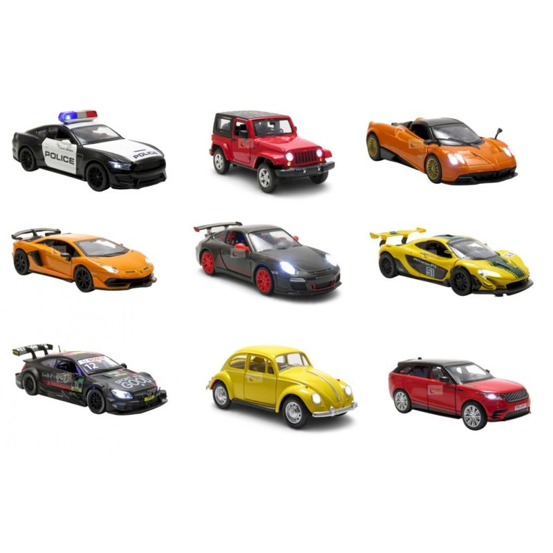 Miniatura em Metal - Som e Luz - California Action Marca do produto: California Toys. Coleção: Som e Luz - California Action. Miniatura em Metal com Partes de Plástico. Miniatura com Fricção. Emite Som e Abre Portas. Luzes Dianteiras e no Painel. Pneus de Borracha. Fonte de Alimentação: 3 baterias AG13/LR44 1.5V (inclusas). Escala: 1/32 (aproximadamente 13cm de comprimento)