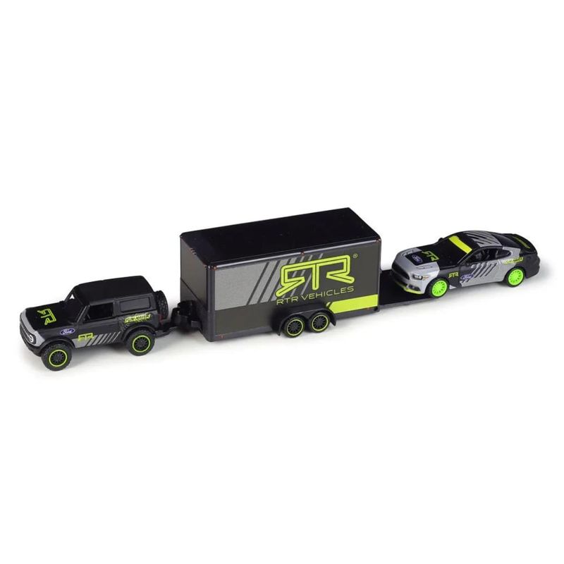 Produto: Miniatura Carro Ford Bronco 2021 e Trailer com Ford Mustang 2015 1/64
