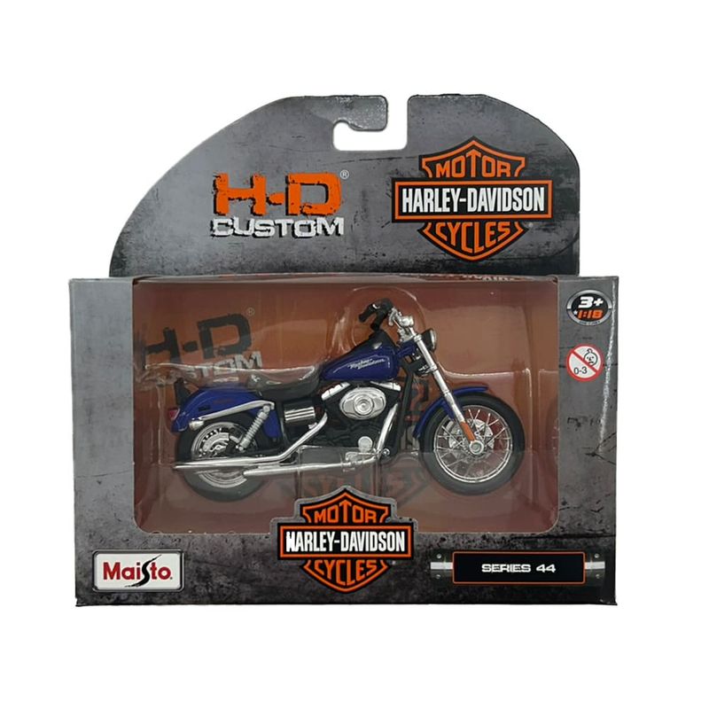 Maisto – Moto Harley-Davidson 2006 Dyna Street Bob Série 44 (Harley-Davidson Custom – Escala 1:18) Este modelo da Maisto representa a clássica Harley-Davidson Dyna Street Bob 2006, integrante da Série 44 da linha Harley-Davidson Custom. Com acabamento em azul, escala 1:18 e cerca de 12 cm de comprimento, a miniatura destaca o estilo minimalista e autêntico da motocicleta, inspirada na tradição bobber com visual limpo e postura agressiva. Detalhes do Produto: Fabricante: Maisto Linha/Série: Harley-Davidson Custom – Série 44 Modelo: Harley-Davidson 2006 Dyna Street Bob Montadora: Harley-Davidson Cor: Azul Escala: 1:18 Comprimento aproximado: 12 cm Composição: Metal, plástico e borracha Idade recomendada: A partir de 3 anos Dimensões da embalagem: 6,5 cm x 18 cm x 10,7 cm Com guidão elevado, assento solo e acabamento detalhado, a Dyna Street Bob Série 44 é ideal para composições temáticas, vitrines de motocicletas customizadas ou coleções dedicadas à linha Dyna da Harley-Davidson. Os elementos visuais exclusivos da Série 44 reforçam o caráter autêntico e estilizado da miniatura, tornando-a uma peça de destaque na coleção.