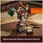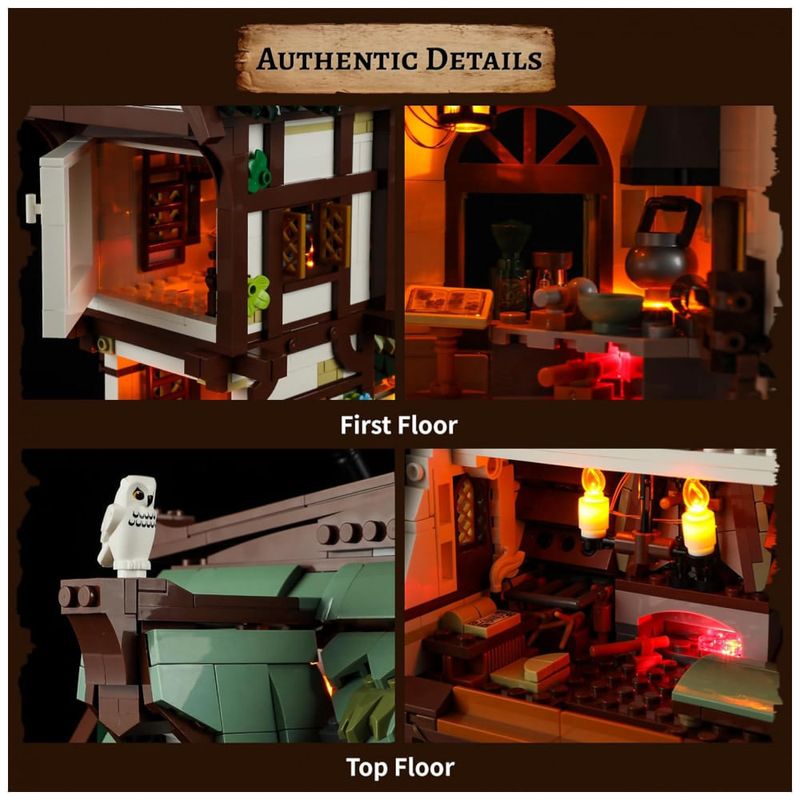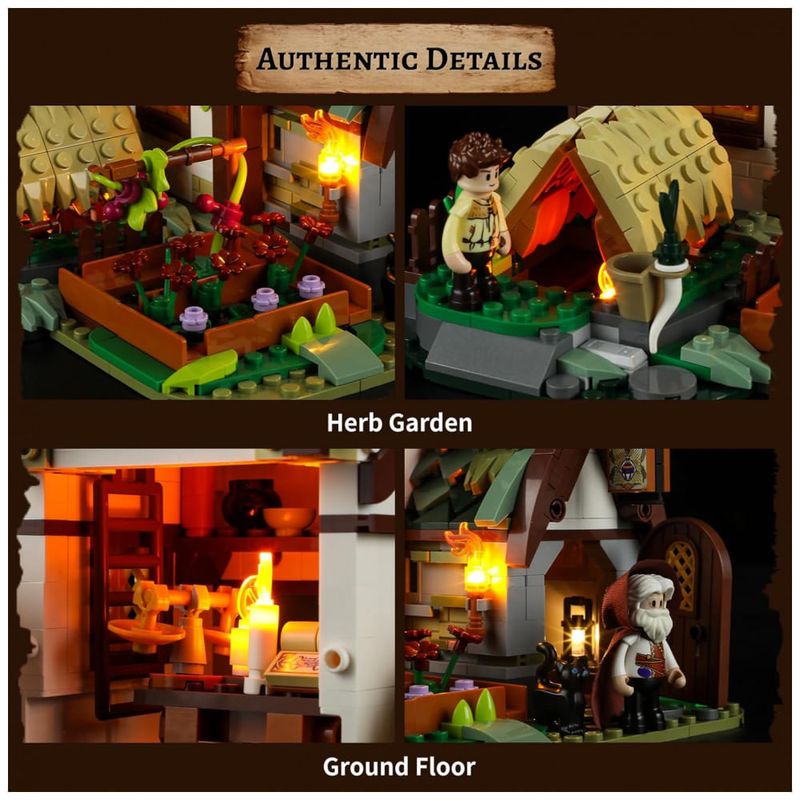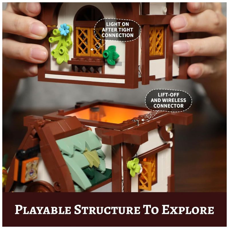O conjunto oferece alta interatividade com paredes removíveis e design de fácil levantamento, proporcionando acesso interno completo. São 9 pontos de iluminação LED estrategicamente posicionados com velas e lampiões a óleo que simulam sombras e luzes suaves típicas da época, utilizando sistema exclusivo de ocultação e fixação de fios que minimiza riscos de danos e mantém a estética limpa.