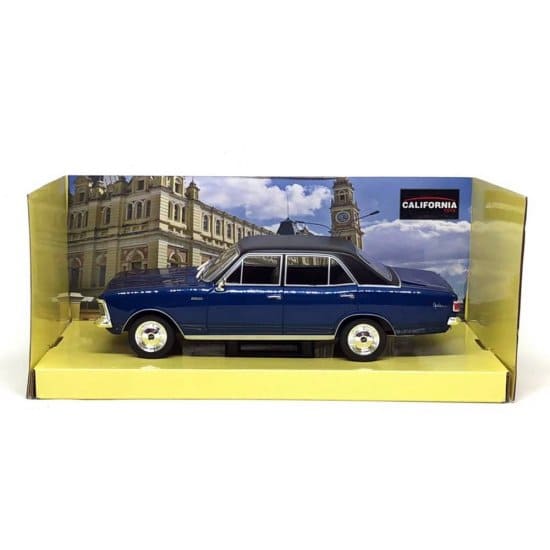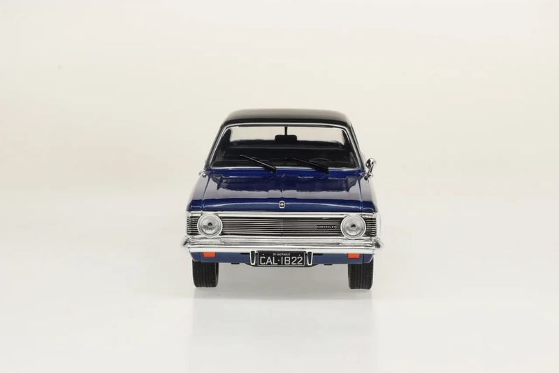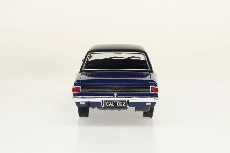 A miniatura de carro Chevrolet Opala 2500 Sedan de 1969 em escala 1/24 da California Classics é fabricada em metal die-cast com acabamentos em plásticos, detalhamento fino na pintura, rodas livres e pneus de borracha.
