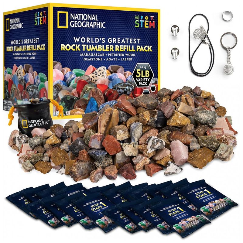 VARIEDADE ENORME Este kit de recarga de copo de pedra tem 2,27 kg de rochas e pedras preciosas não polidas, consistindo em uma mistura de pedras preciosas de 0,45 kg, mistura de ágata de 0,45 kg, mistura de Madagascar de 0,45 kg, mistura de jaspe de 0,45 kg e mistura de madeira petrificada de 0,45 kg