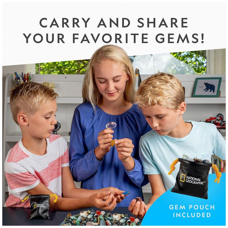 CONFIGURAÇÕES DE JÓIAS Depois que suas pedras estiverem polidas, use as 5 configurações de joias incluídas para criar lindas lembranças ou use a bolsa de zenamento incluída para manter seus espécimes favoritos em um só lugar.