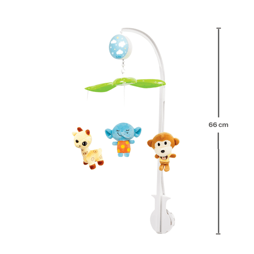 O Mobile Baby da Buba possui três bichinhos super fofos pendurados. Ao dar corda, ele toca uma linda canção de ninar para atrair a atenção ou até mesmo embalar o soninho dos pequenos. As cores dos personagens e o som estimulam o desenvolvimento visual, auditivo e emocional dos bebes.
