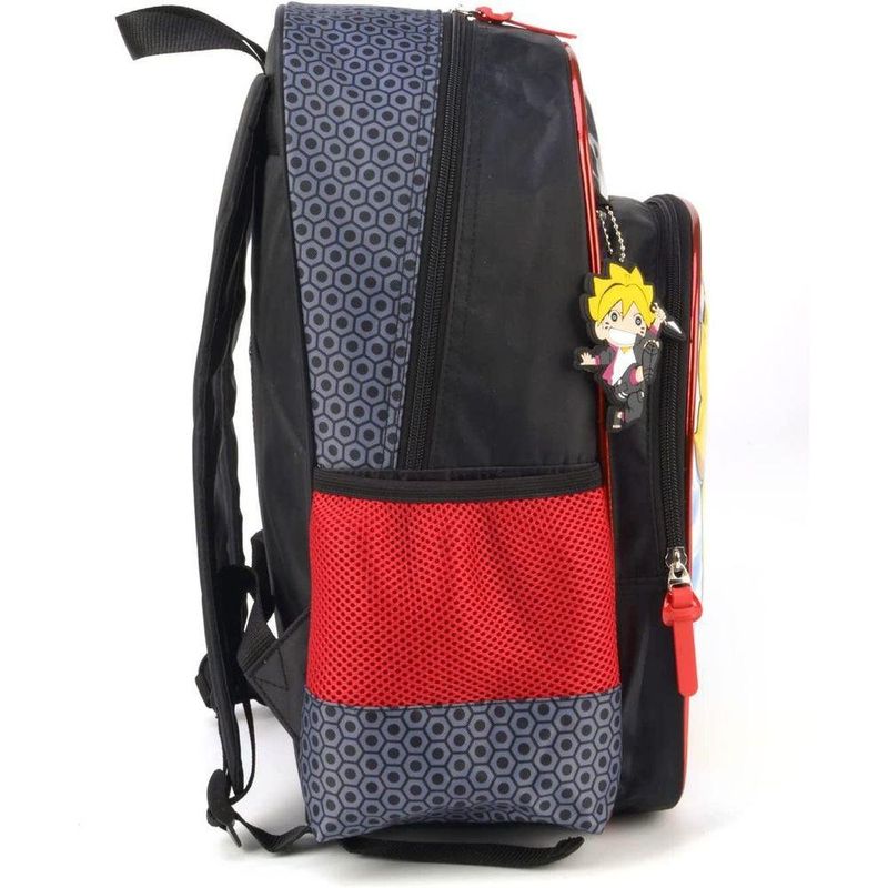 Mochila costa, bolso frontal grande e bolsos laterais, identificador personalizado, penduricalho, alça ajustável.