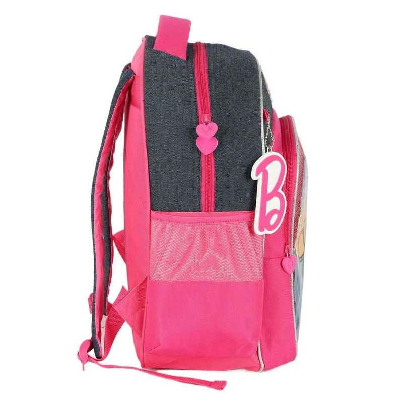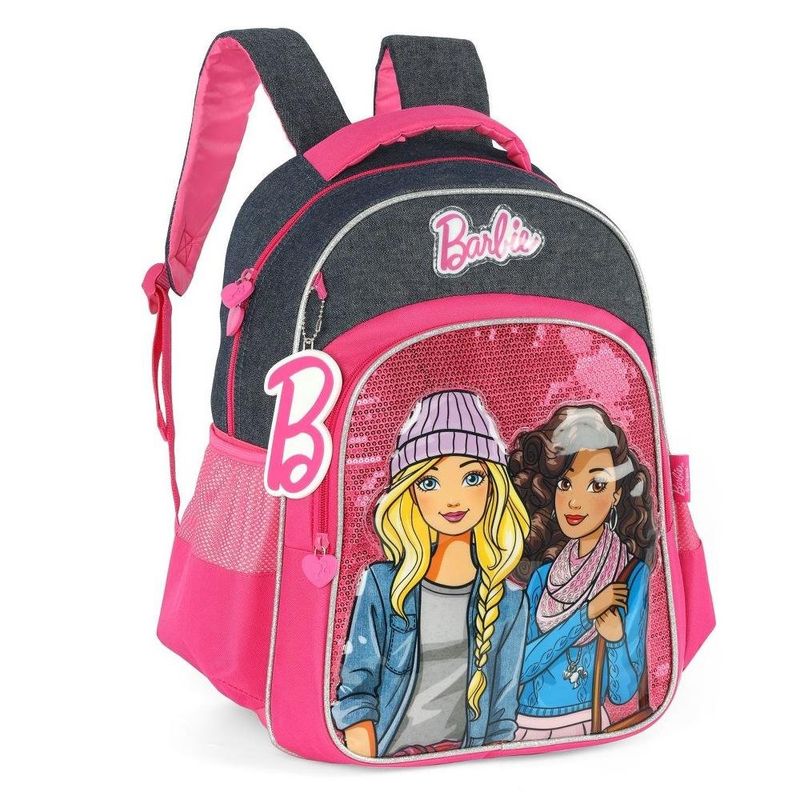 A Mochila de Costas Infantil Barbie e Amiga Paetê Rosa é perfeita para meninas que adoram a Barbie e desejam carregar todo o charme e brilho desse universo encantador para a escola. Com detalhes em jeans e paetês rosa, ela une estilo, funcionalidade e resistência.