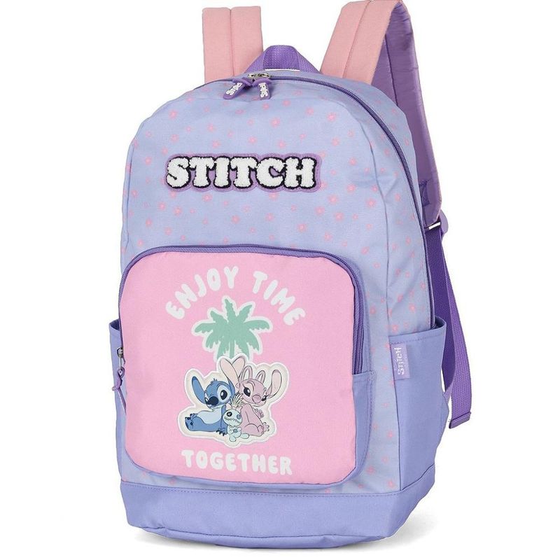 Mochila de Costas Luxcel Stitch Flores Roxo