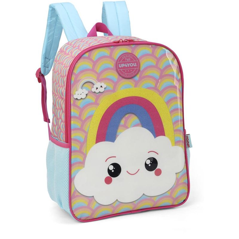MOCHILA DE COSTAS LUXCEL UP4YOU NUVEM Mochila com bolsos laterias em tela com elástico, alças de costas espumadas e reguláveis, silk frontal, bolso frontal com zíper, alça de mão e etiquetas personalizadas. Características Principais: Dimensões: Aproximadamente 45 x 32 x 16cm (AxLxP). Volume: Aproximadamente 22 Litros. Garantia contra defeito de fabricação.