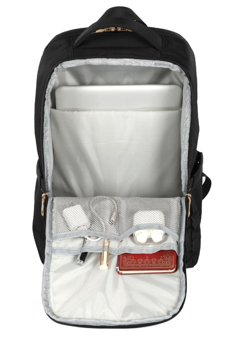 A coleção Casual Feminina Up4You traz modelos versáteis que acompanham a rotina do dia a dia, inclusive em ambientes executivos. A mochila de costas apresenta dois compartimentos principais, sendo um deles com espaço para notebook, além de dois bolsos frontais um com zíper e outro aberto livre, bolsos laterais livres e zíper personalizado da marca.Modelo: MN54141UP Com design elegante, possui logo em ouro light, alças resistentes e almofadadas para maior conforto, além de alça carona que permite acoplar facilmente em malas de viagem. Os detalhes em PU e o compartimento com organizador de objetos reforçam a praticidade e a sofisticação do modelo.Com dimensões de 44 x 31 x 18 cm, a mochila é classificada como média e possui 17 polegadas. Para confirmar se o seu equipamento é compatível, orientamos medir o notebook e comparar com as medidas internas da mochila.Dicas de uso: ideal para rotina de estudos, trabalho, viagens e compromissos do dia a dia, oferecendo praticidade e estilo em qualquer ocasião.Dicas de limpeza: limpe com pano úmido e sabão neutro; evite produtos químicos, lavagem em máquina, secadoras ou ferro de passar para manter o material em perfeito estado.
