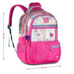 Acompanham a mochila acessórios charmosos que reforçam sua exclusividade: um chaveiro pompom com orelhinhas, um cadarço e uma estrela de acrílico. Com a linha Holo Shine, o futuro é brilhante e o seu estilo nas aulas será inconfundível.