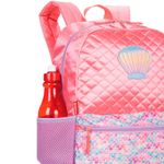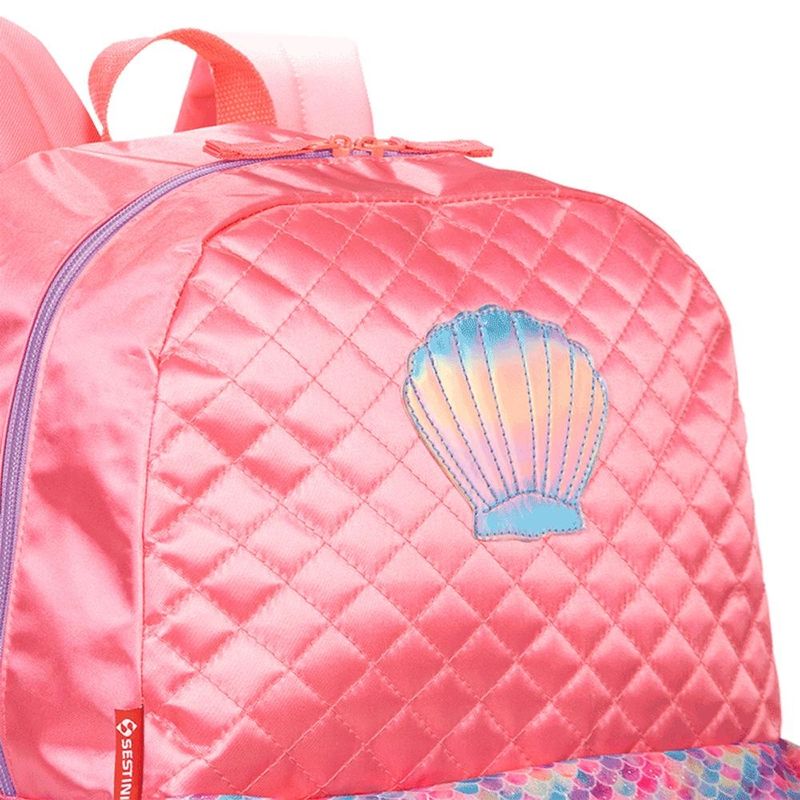 MOCHILA DE COSTAS SESTINI M PLUS SEREIA Inspirada nos elementos do fundo do mar e coberta com um rosa cintilante, a mochila da Sereia tem um bolso frontal colorido, com textura de glitter que lembram escamas, além de uma concha holográfica. Os puxadores do zíper tem reforço em cadarço e o compartimento principal conta com espaço de sobra para a pasta de atividades e os materiais escolares. Características Principais: Dimensões: 32 x 42 x 18cm (LxAxP). Volume: 19 Litros Composição: Poliéster. Garantia contra defeito de fabricação.