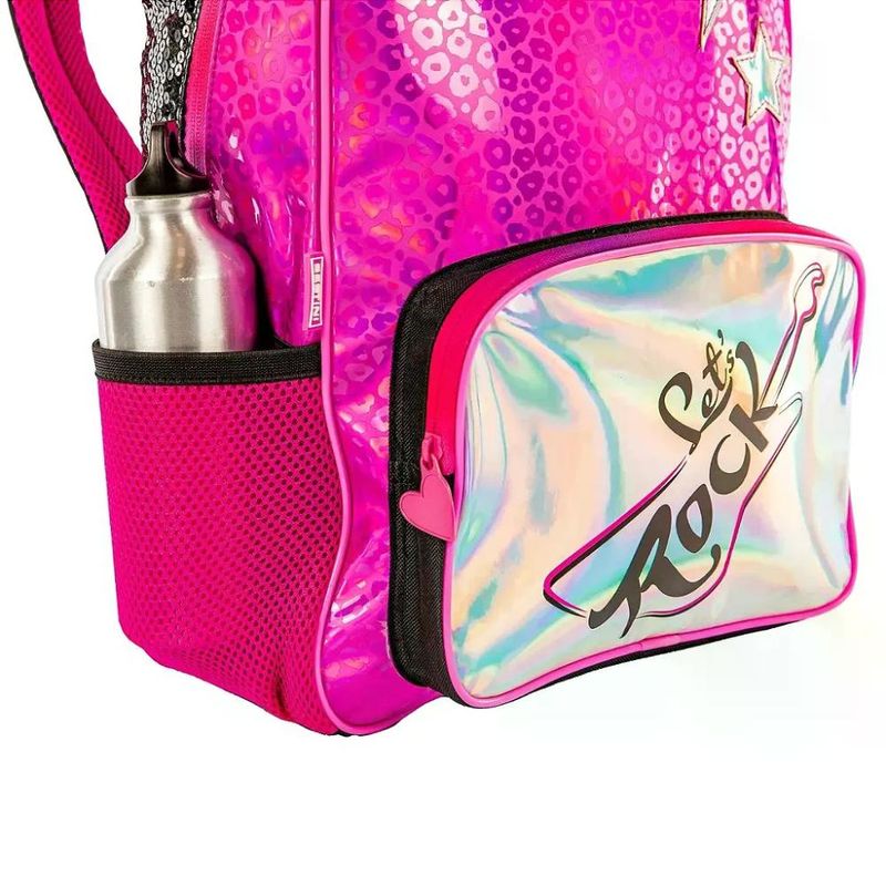 MOCHILA DE COSTAS SESTINI Mochila com bolsos laterias em tela com elástico, alças de costas reguláveis, estampa frontal, bolso frontal com zíper, alça de mão e etiquetas personalizadas. Características Principais: Dimensões: 30 x 41 x 19cm (LxAxP). Volume: 18 Litros Peso: 0,4kg. Garantia contra defeito de fabricação.