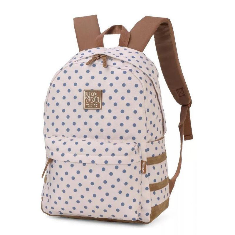A Mochila De Costas UP4YOU Larissa Manoela Bege Com Poa Azul chegou para te acompanhar no dia a dia! Com um design divertido, acolchoado em ondas de bolinhas e colorido ela veio pra trazer muita diversão e te acompanhar em aventuras!