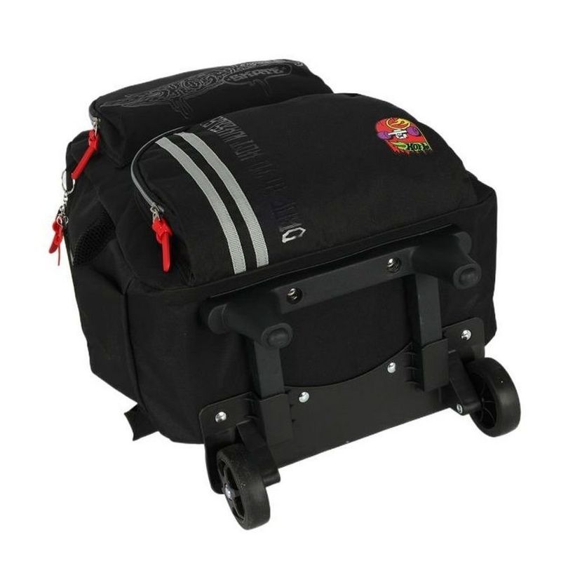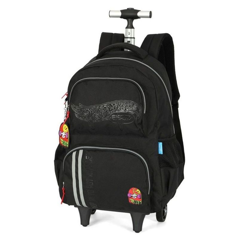 A Mochila De Rodinha E Alça Hot Wheels Skate Preto Luxcel é um modelo projetado para oferecer praticidade no transporte de materiais escolares, combinando rodinhas e alças de ombro.
