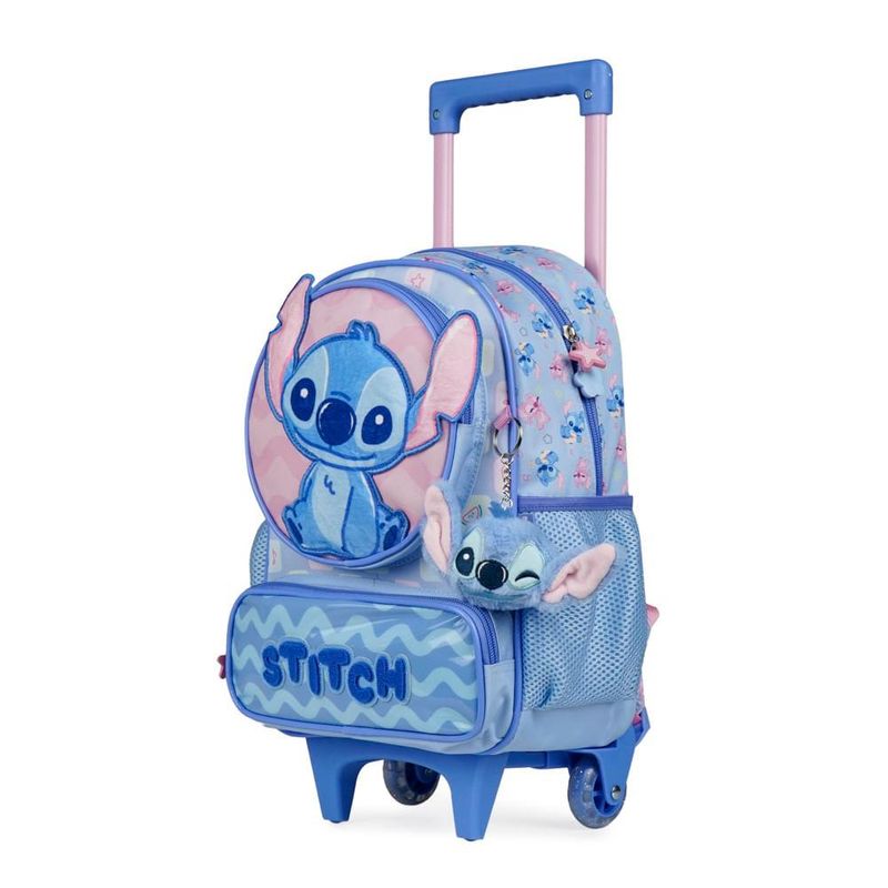Mochila de Rodinha Feminina Infantil Stitch Baby Azul Claro