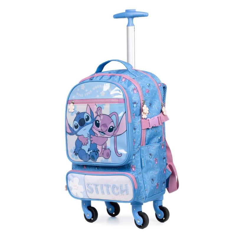 Mochila de Rodinha Infantil Feminina Stitch e Angel Azul