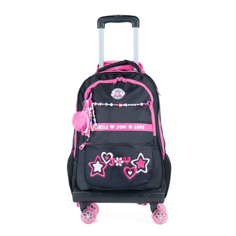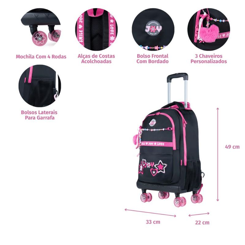 As rodas de skate, além de personalizadas, garantem deslize fácil e deixam o modelo ainda mais estiloso para acompanhar a rotina escolar.