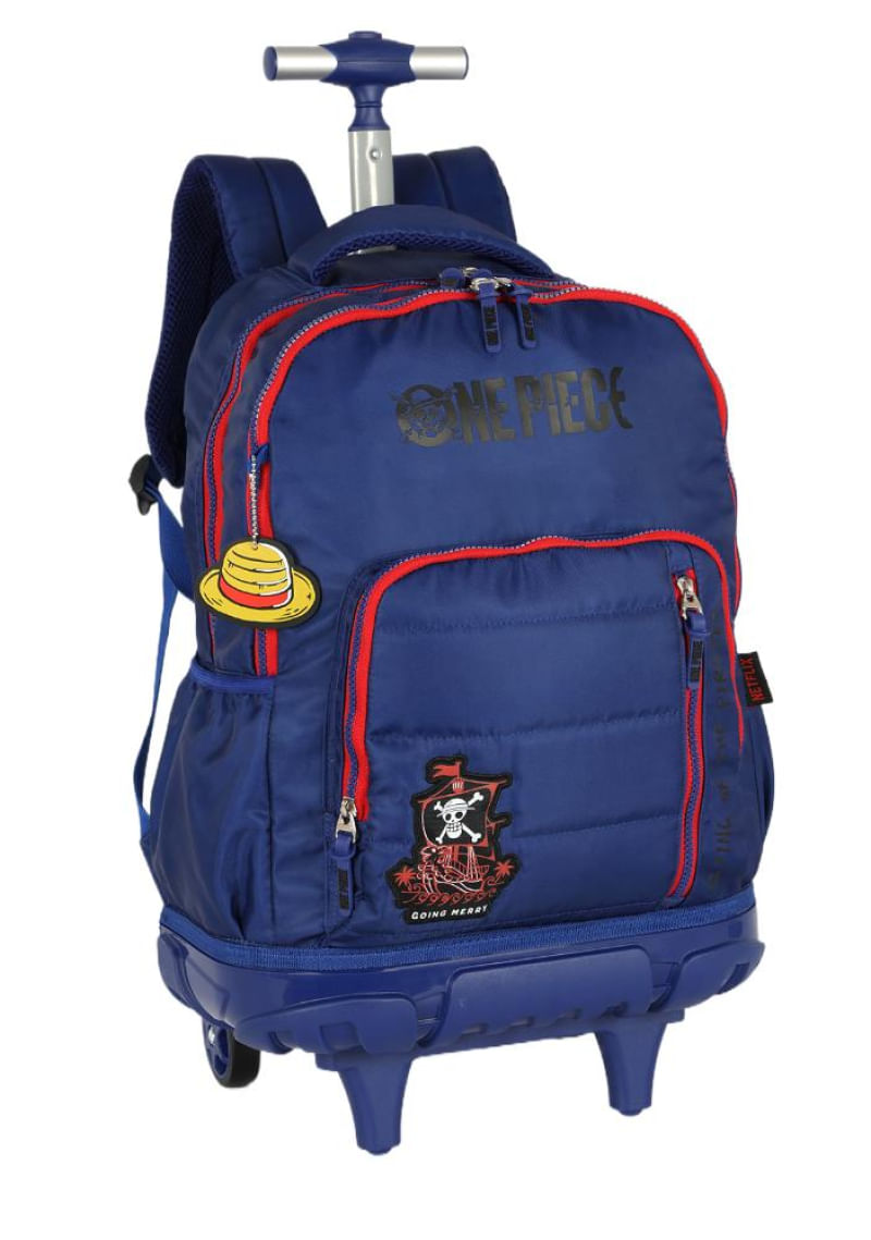 A Mochila Juvenil com Rodinhas One Piece Up4you modelo MC49804OP foi inspirada no universo vibrante do famoso anime e mangá que conquistou fãs no mundo todo. Desenvolvida para quem busca estilo, praticidade e personalidade, traz detalhes exclusivos que remetem ao espírito aventureiro da tripulação do Chapéu de Palha.Com dimensões de 46 x 34 x 22 cm e capacidade aproximada de 25 litros, é classificada como mochila média juvenil com rodinhas, ideal para uso escolar, passeios ou atividades do dia a dia.Entre seus diferenciais, destacam-se o chaveiro personalizado, a estampa com aplique bordado, o bolso frontal com zíper, o bolso lateral livre e o zíper personalizado, que completam o design moderno e cheio de atitude.Confeccionada em náilon resistente, a mochila oferece leveza, durabilidade e conforto, sendo perfeita para acompanhar a rotina com o toque autêntico do universo One Piece.Material: náilon resistenteClassificação: mochila média juvenil com rodinhasPolegadas: 18"Dicas de uso: ideal para escola, passeios ou viagens curtas, combinando organização e estilo para quem é fã de One Piece.Dicas de limpeza: limpar com pano macio levemente umedecido em água e sabão neutro. Evite produtos químicos agressivos e imersão em água, para preservar o acabamento do tecido e os detalhes bordados.