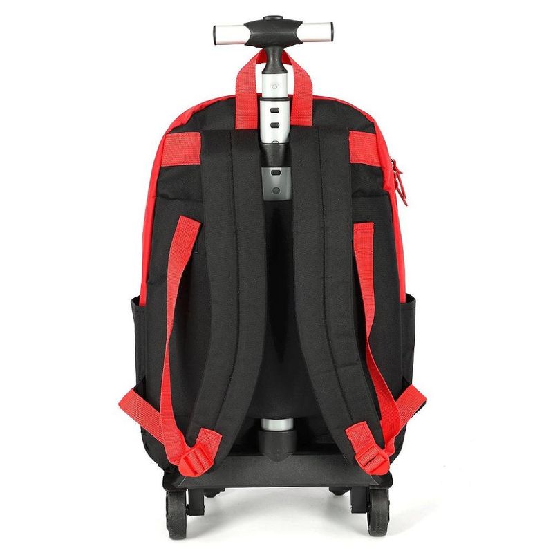 MOCHILA DE RODINHAS COM ALÇA LUXCEL Mochila de rodinhas com alça, bolsos laterias em tela com elástico, alças de costas espumadas e reguláveis, silk frontal, bolso frontal com zíper, alça de mão e etiquetas personalizadas. Características Principais: Dimensões aproximadas: Mochila 45 x 34 x 22cm. Garantia contra defeito de fabricação.