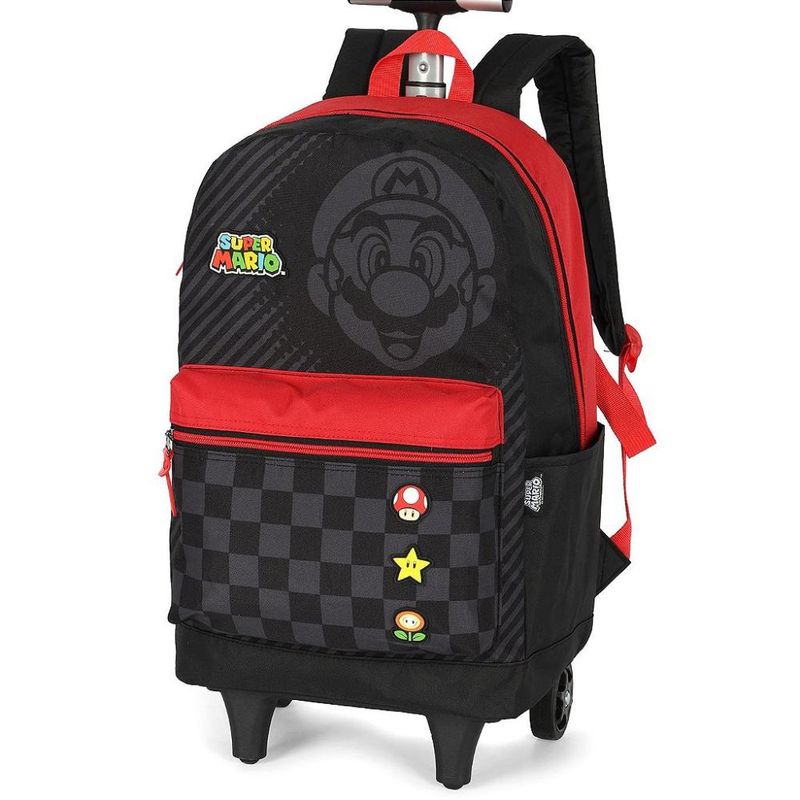 Mochila de Rodinhas Com Alça Luxcel Mario Bros Patch Vermelho