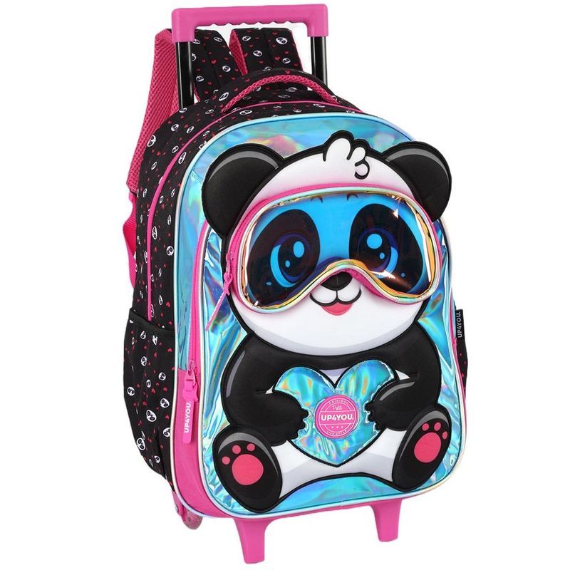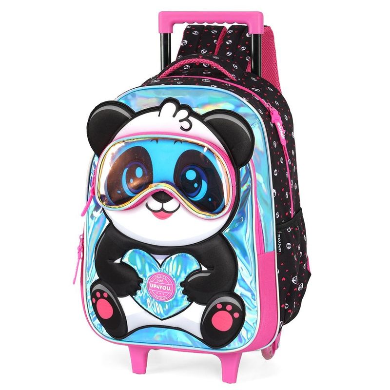 Mochila de Rodinhas Com Alça Luxcel Up4You Panda Pink Preto