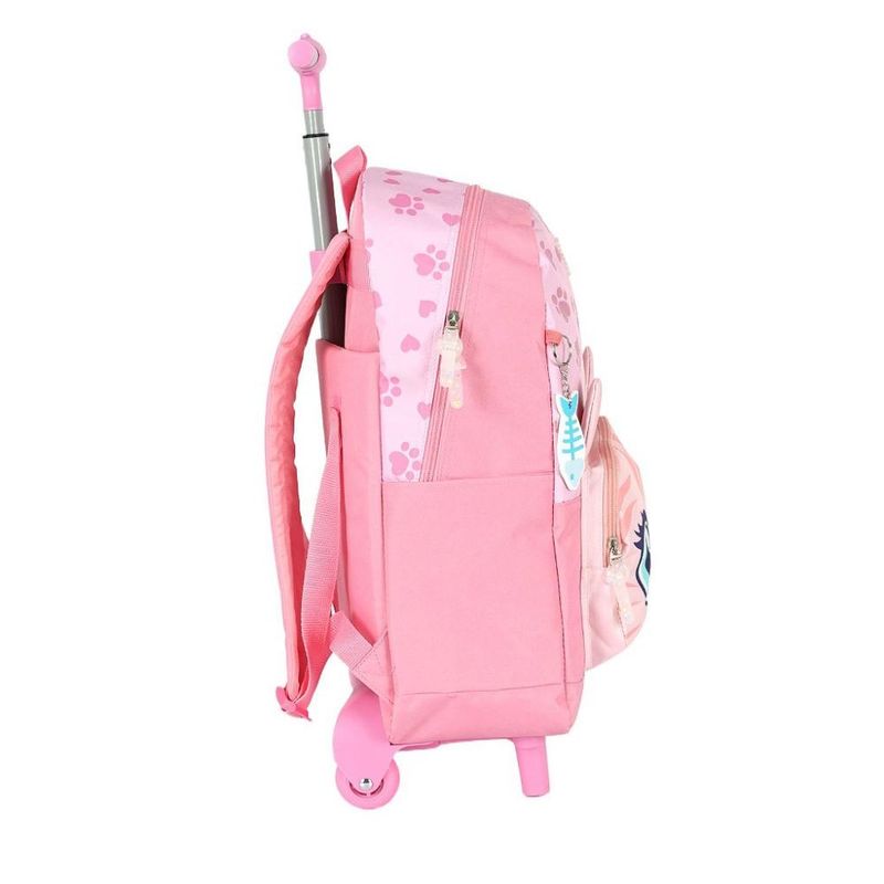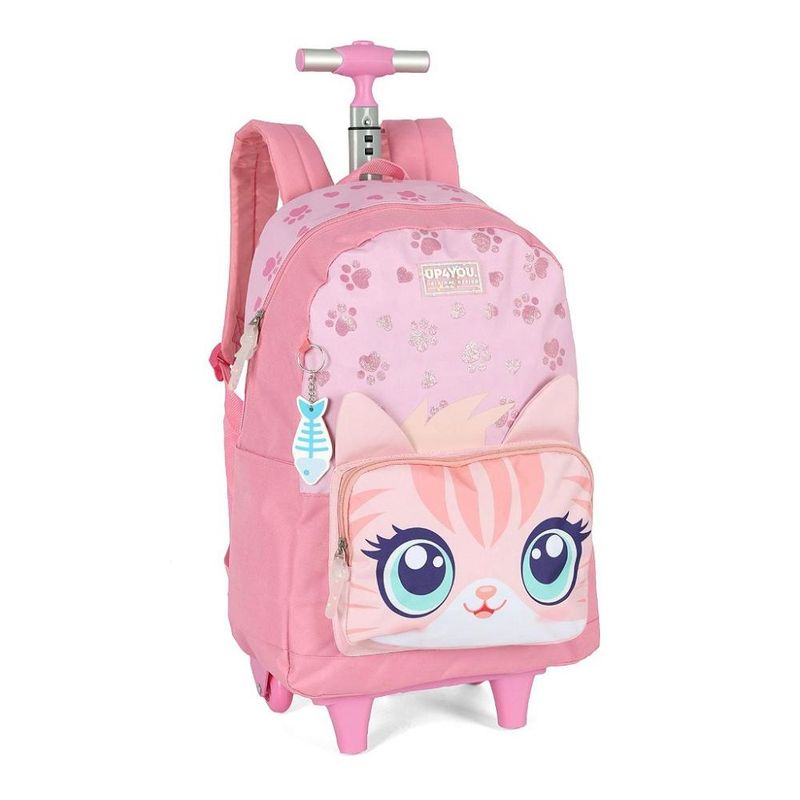 MOCHILA DE RODINHAS COM ALÇA LUXCEL Mochila de rodinhas com alça, bolsos laterias em tela com elástico, alças de costas espumadas e reguláveis, silk frontal, bolso frontal com zíper, alça de mão e etiquetas personalizadas. Características Principais: Dimensões aproximadas: Mochila 46 x 32 x 15cm (AxLxP). Volume aproximado: Mochila 22,5 Litros. Garantia contra defeito de fabricação.