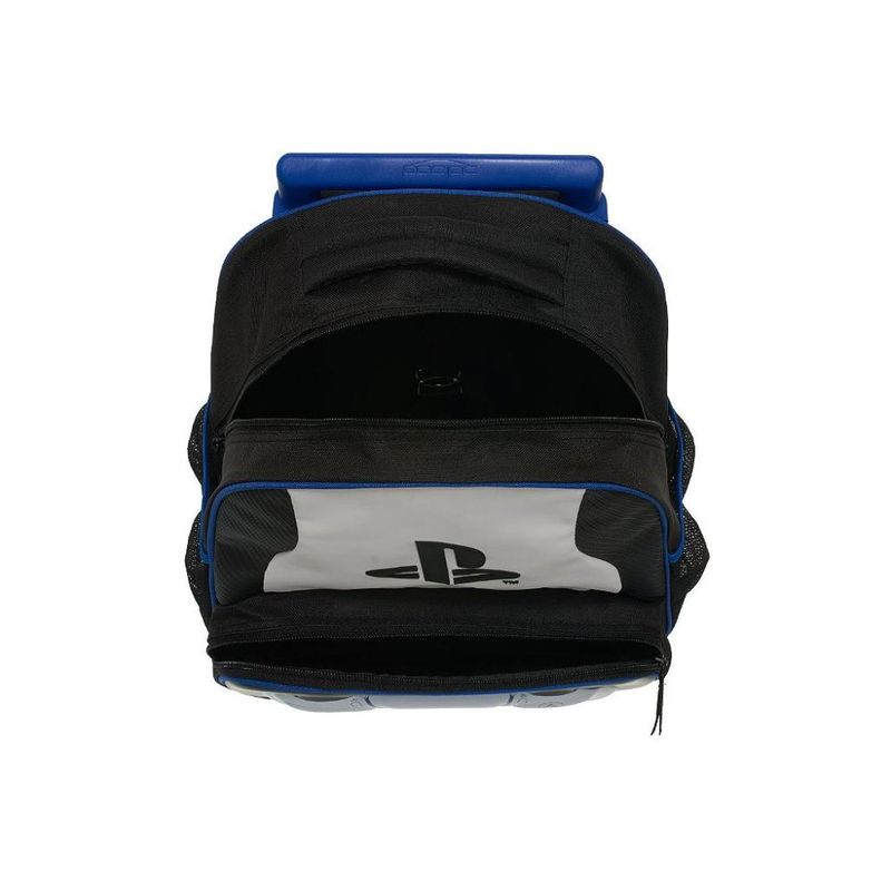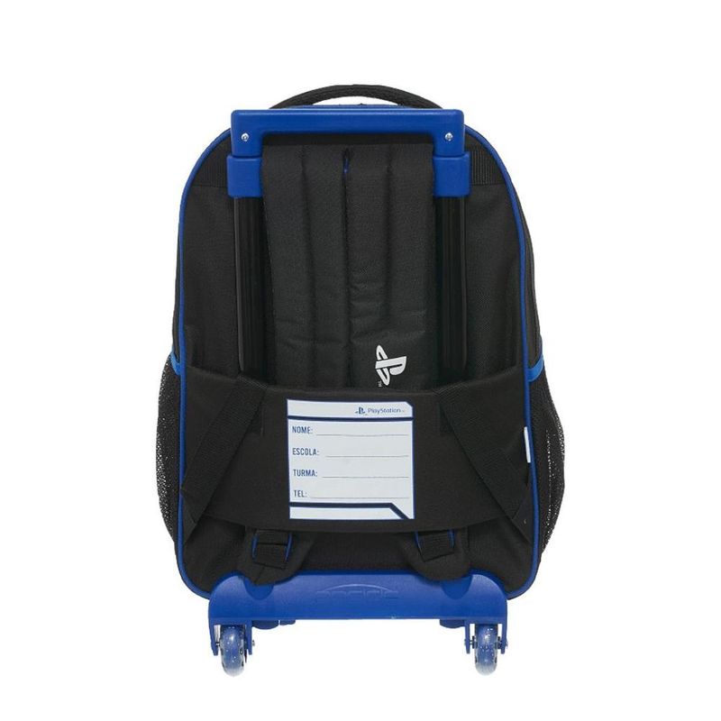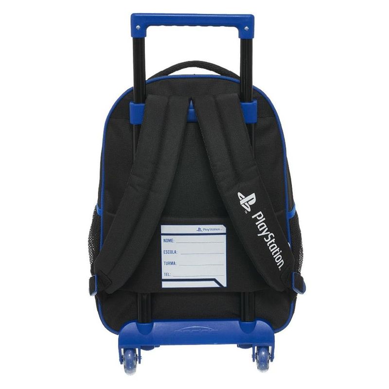 MOCHILA DE RODINHAS PACIFIC PLAYSTATION Mochila de rodinhas Pacific com alças de costas, que conta com estampa frontal, bolso frontal, telinha lateral, compartimento grande com fechamento em zíper e etiquetas personalizadas. Características Principais: Dimensões: Aproximadamente 44 x 32 x 14cm (LxPxA). Garantia contra defeitos de fabricação.