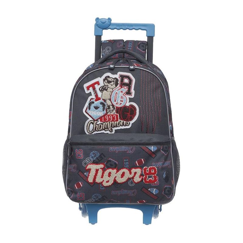 MOCHILA DE RODINHAS TIGOR T TIGRE Mochila de rodinhas Tigor T Tigre com alças de costas, que conta com estampa frontal, bolso frontal, telinha lateral, compartimento grande com fechamento em zíper e etiquetas personalizadas. Características Principais: Dimensões: Aproximadamente 43 x 31 x 13cm (LxPxA). Volume: 19 litros. Garantia contra defeitos de fabricação.