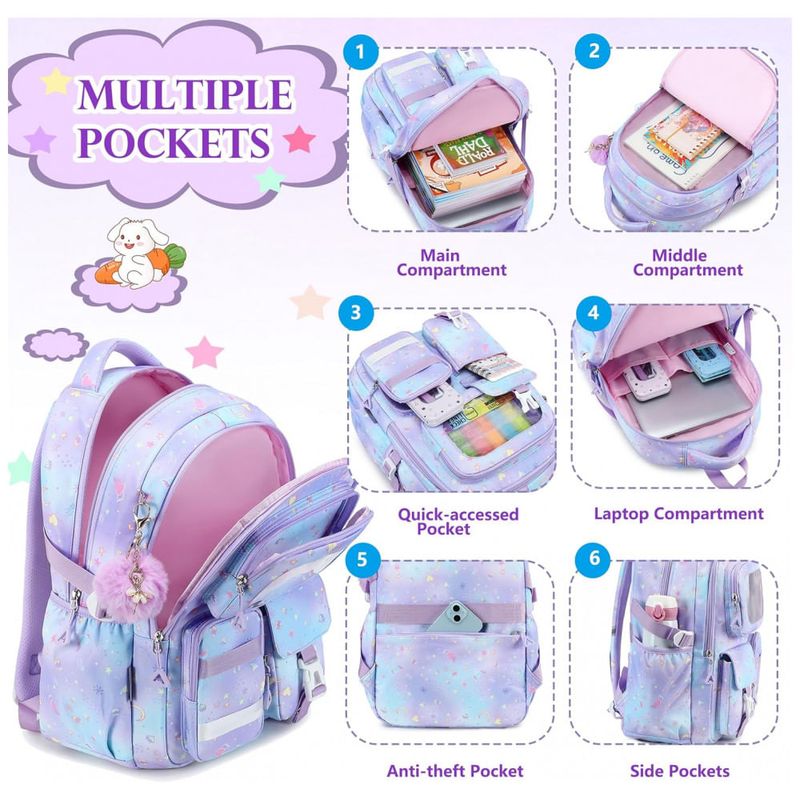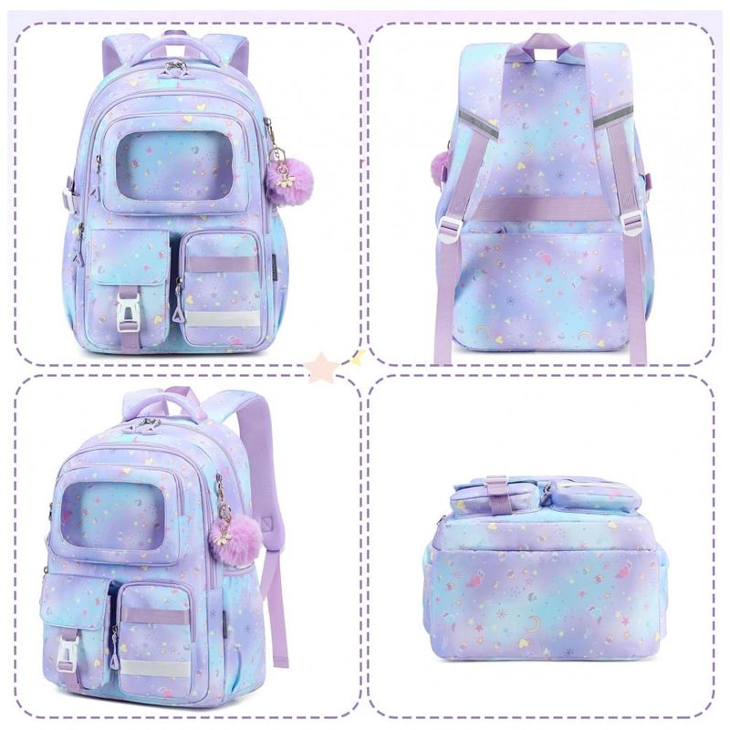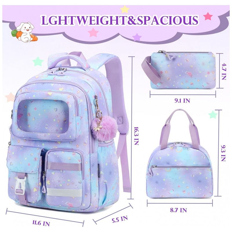 O conjunto é produzido em nylon 900D com revestimento resistente à água, zíperes de abertura suave e costuras reforçadas, favorecendo maior durabilidade no uso escolar. As alças de ombro em formato S são acolchoadas e ajustáveis, com painel traseiro acolchoado para melhor distribuição de peso, enquanto o peso total aproximado de 0,66 kg para as três peças contribui para um transporte mais confortável para crianças e adolescentes.