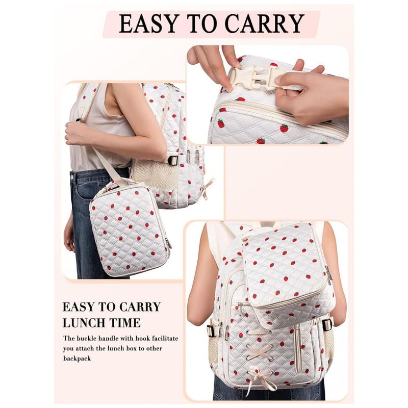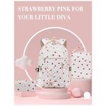 Modelo: Conjunto mochila escolar 3 peças com estampa de morangos