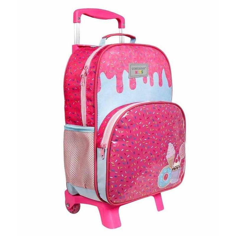 Mochila Escolar de Rodinhas Dermiwill Container Kids Candies com rodinhas, comporta materiais, trocas de roupa, os brinquedos favoritos e todos os objetos necessários para esta fase. Possui 2 alças de mão que proporcionam mais segurança e conforto no transporte.