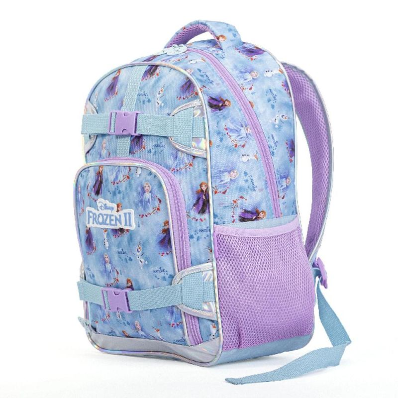 Com a mochila Disney Frozen II o mundo mágico das princesas Elsa e Ana pode fazer parte do kit escolar da sua criança. Seu material é feito em poliéster, que é bastante resistente e durável. Além disso, ela possui um compartimento principal com amplo espaço interno, um bolso frontal com zíper e dois bolsos laterais de tela, ideais para colocar garrafinhas.