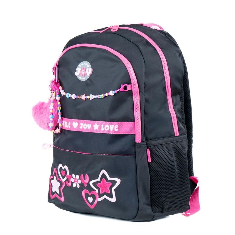 A Mochila BG Joy foi feita para meninas que gostam de cores, detalhes divertidos e cheios de personalidade. O modelo traz diferentes texturas, bordado frontal “JOY” e logo emborrachado, além de acessórios presos por mosquetões que podem ser trocados sempre que quiser. Conta com rodas de skate personalizadas, que garantem deslize fácil e deixam o modelo ainda mais estiloso para acompanhar a rotina escolar.