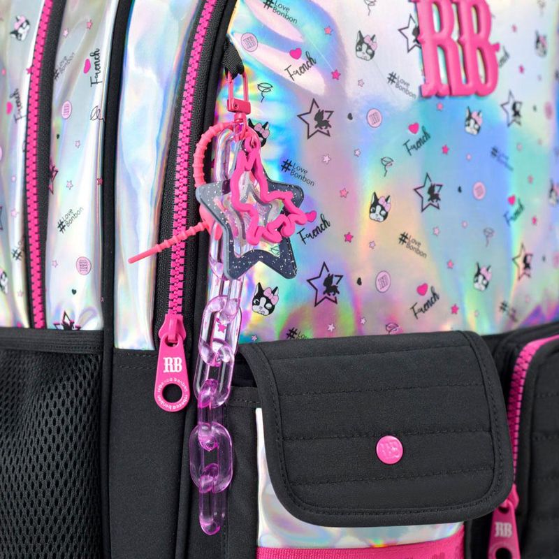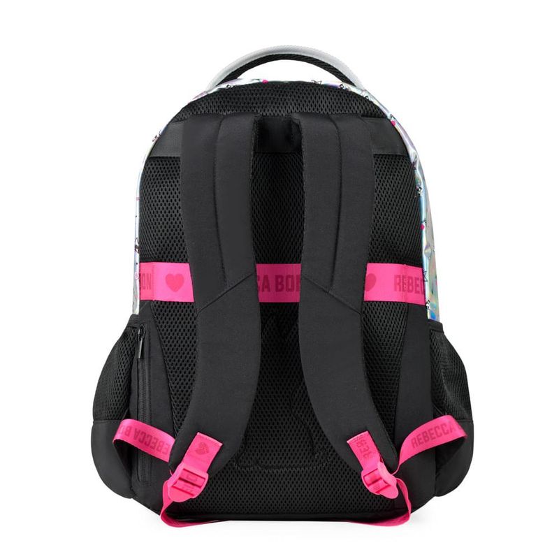 As alças acolchoadas e ajustáveis, o costado anatômico respirável e o reforço na base garantem conforto e resistência. O destaque fica para o chaveiro exclusivo da personagem Rebecca Bonbon e os detalhes em rosa pink, que deixam a mochila ainda mais encantadora.