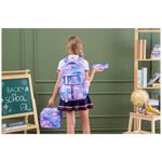 Fabricado em poliéster leve, resistente e repelente à água, o conjunto foi projetado para uso diário em ambiente escolar e atividades externas, com costuras reforçadas e zíperes de abertura suave. As alças de ombro da mochila são acolchoadas com espuma espessa, possuem desenho ergonômico e fivela peitoral para melhor distribuição de peso e redução de deslizamentos, enquanto o painel traseiro almofadado com material respirável contribui para maior conforto. A lancheira conta com isolamento térmico de múltas camadas para conservação da temperatura de alimentos e bebidas, e o estojo espaçoso com alça auxilia na organização de lápis e canetas.