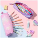 Estojo: Estojo com capacidade para lápis, canetas e borrachas, com alça