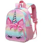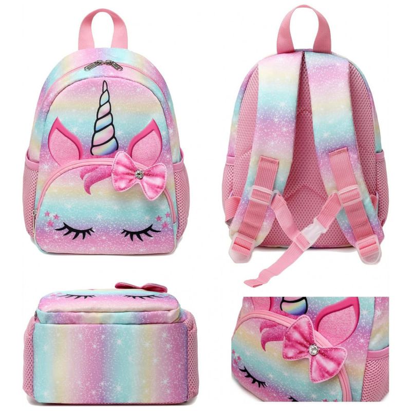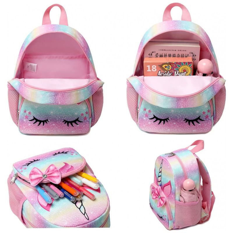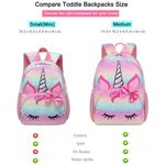 Mochila unicórnio para meninas pequenas a mochila infantil é feita de poliéster durável resistente à água, leve e fácil de limpar, não desbota, inodoro, durável, ecológico e saudável. Isso protegerá seus itens internos da garoa, enquanto não estiver em chuva forte. Ele se encaixa na praia de lazer ao ar livre da escola.