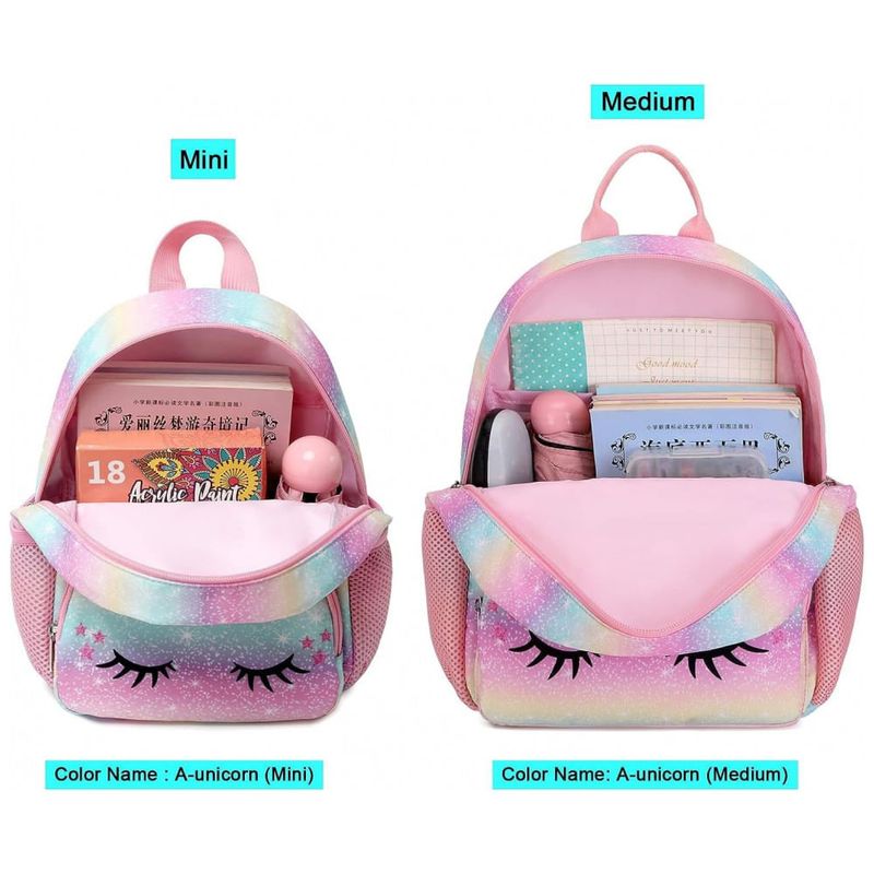 Bolso principal espaçoso para lancheira, livros, brinquedos, garrafa de água, lápis e lanches, etc. O padrão e o design super fofos deixarão suas pequenas crianças em idade pré escolar ou escolar animadas para ir para a escola com esta mochila