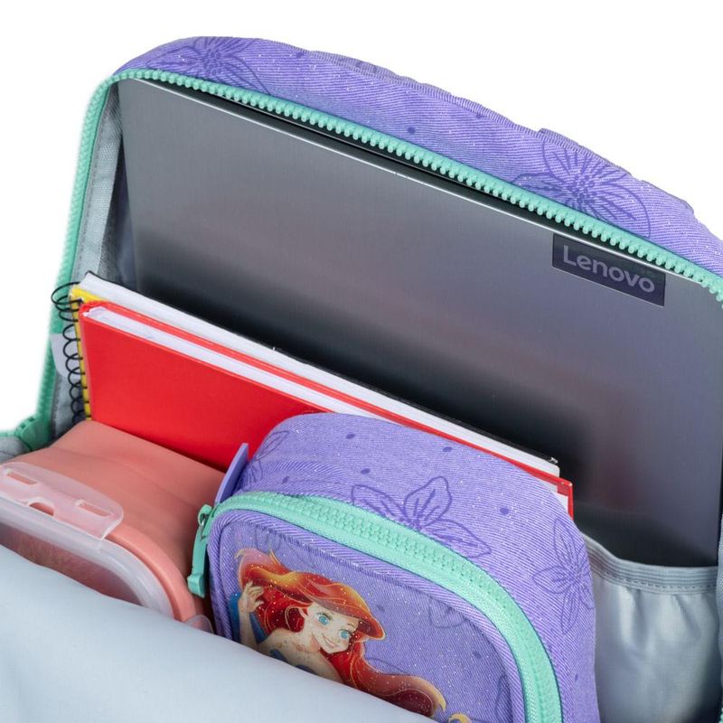 -Estilo Único: Com detalhes inspirados nos personagens, a Mochila Escolar Ariel Glitter Lilás possui detalhes metalizados e conjunto de zíper com desenho do Linguado.