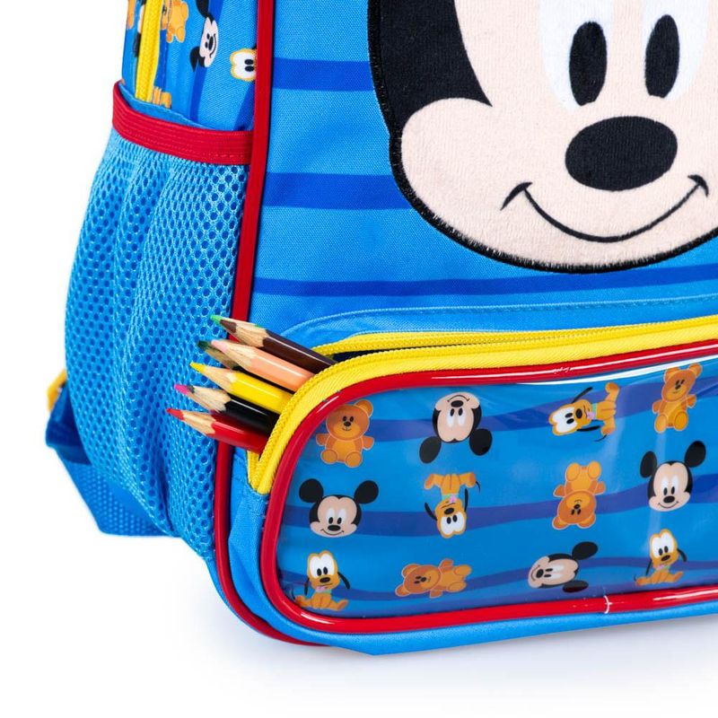 A Mochila Escolar Mickey Baby Azul incorpora um design mais lúdico e encantador com as orelhas do personagem Mickey, oferecendo uma maneira muito mais divertida de carregar seus livros e materiais escolares.