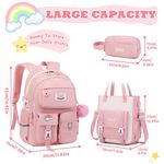 Modelo: Conjunto mochila escolar 3 peças rosa com bolsa tiracolo e estojo