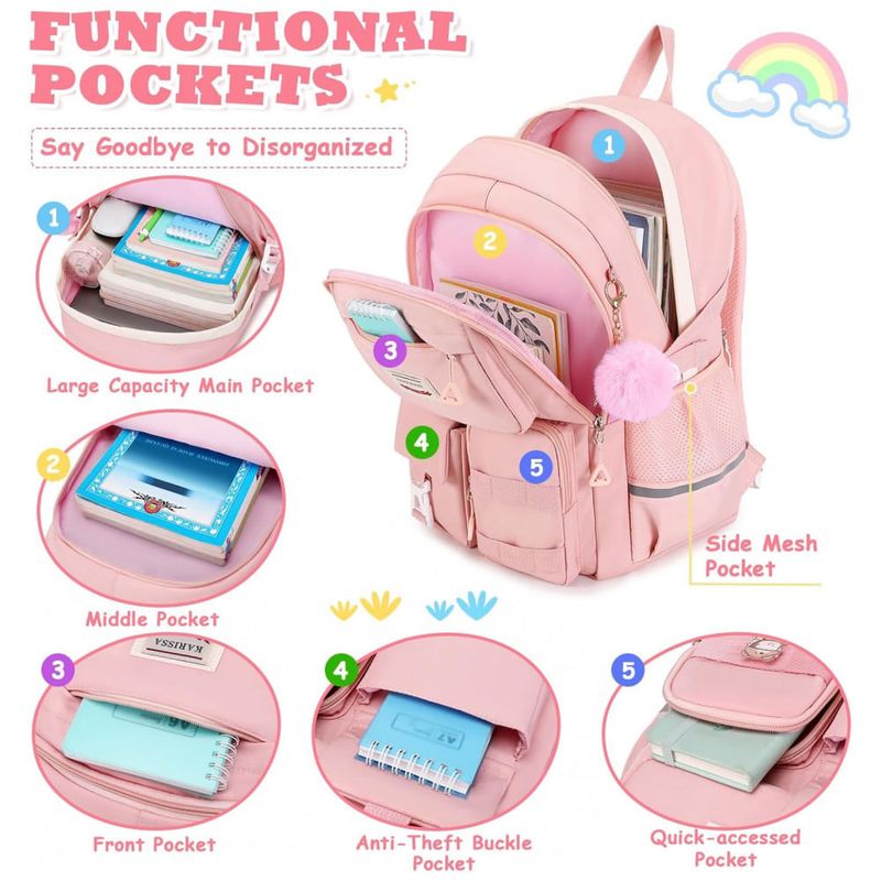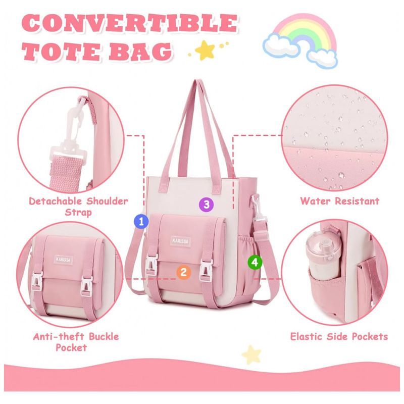 O conjunto é produzido em poliéster espesso com acabamento resistente à água e rasgos, aliado a costuras reforçadas, zíperes de deslize suave e fivelas antideslizantes nas alças, adequado ao uso intenso em rotina escolar. As alças de ombro acolchoadas e o painel traseiro com espuma ajudam a distribuir melhor o peso e reduzem a pressão nos ombros, atendendo a faixas etárias aproximadas de 6 a 14 anos. A bolsa tiracolo conversível amplia a capacidade de transporte em passeios e deslocamentos, enquanto o estojo facilita a organização de lápis, canetas e pequenos acessórios.